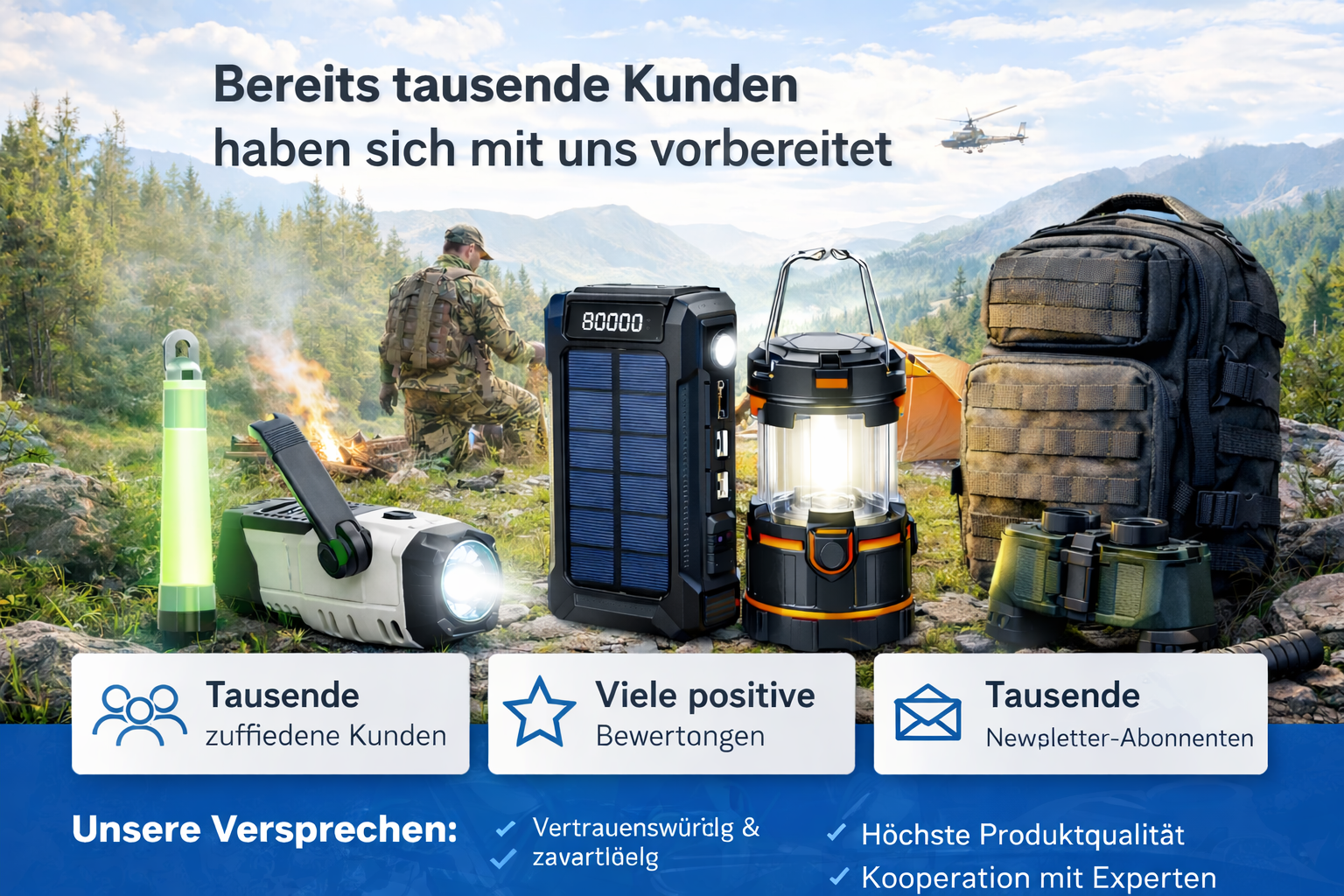 Wir wählen jedes Produkt sorgfältig aus, um dir robuste, hochwertige Outdoor- und Survival-Essentials zu bieten, die du nicht überall findest.